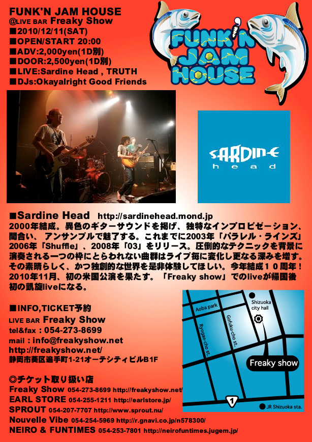 sardine headは御徒町AIMS(http://aims.bz/)にて、22:00〜23:30の出演となります。